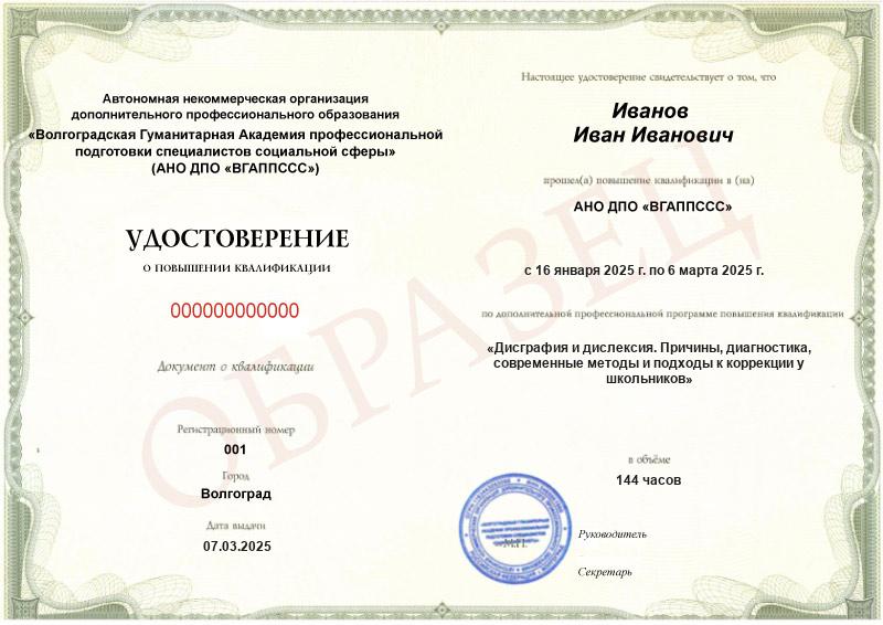 Да, АНО ДПО «ВГАППССС» выдаёт документы о квалификации установленного организацией образца, возможность выдачи образовательной организацией документов установленного образца регламентирована приказом Минобрнауки РФ №499.
