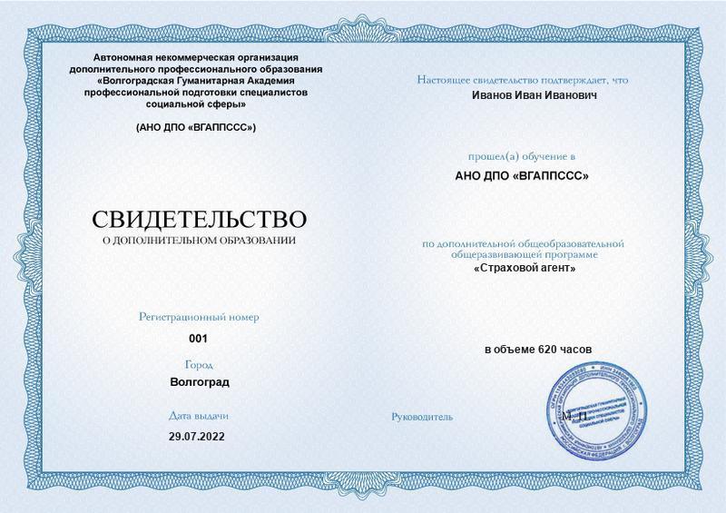 Учебный план дополнительной общеобразовательной программы «Страховой агент»