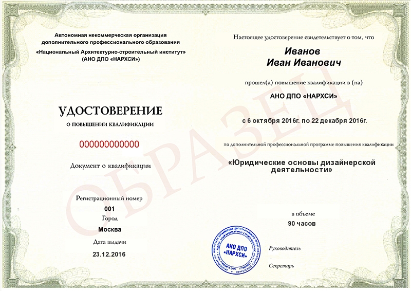 После окончания программы дополнительного профессионального образования от 16 до 250 часов Вы получите удостоверение о повышении квалификации.